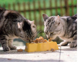 Так как привычки складываются в раннем возрасте, кошке следует давать готовый корм, которым Вы будете кормить ее в дальнейшем, начиная с малолетства. На питании растущей кошки следует еще менее экономить, чем на питании взрослого животного. Новорожденный котенок весит 100 граммов и прибавляет в весе в первые четыре недели в четыре раза. В первые три недели эта огромная потребность в энергии восполняется за счет молока кормящей кошки, но затем котенку требуется дополнительное питание. Поскольку у котят еще небольшой желудок, а растут они быстро, их дневной рацион следует разбить на шесть приемов пищи с интервалом в два часа. У сукотной кошки энергозатраты постоянно возрастают. Потребность в белке тоже повышена. Необходимое количество корма разбивается на три, а еще лучше на пять приемов пищи. Кормящей кошке требуется значительно больше: до шестой недели количество корма возрастает в зависимости от количества котят в два-три раза по сравнению с потребностью некормящей кошки. Это повышенное количество корма должно быть разбито в течении дня на шесть приемов пищи. За неделю количество корма увеличивается на 20-25%. Необходимо давать дополнительно кальциевые и витаминные препараты (при кормлении специальными готовыми кормами - не требуется). Всегда должна быть в достаточном количестве свежая вода. Взрослой кошке лучше всего давать двухразовое питание: утром и вечером. Взрослой кошка считается тогда, когда перестает расти ее скелет. Этого состояния она достигает в девяти-десятимесячном возрасте. Кормить следует ежедневно в одни и те же часы. Кошка очень быстро приучается к этому времени и сама требует своего корма. Если питание кошки переключается с обычного на готовый корм, то к нему кошку следует приучать постепенно. Лучше всего подмешивать новый корм к обычному, а не резко его менять, и постепенно повышать содержание нового корма в смеси, пока он полностью не заменит старый. Готовый корм бывает в сухом виде и в виде консервов. Оба вида корма гарантируют правильное и здоровое питание кошки. С готовым кормом кошка получает все необходимые питательные вещества, витамины и минеральные вещества, а также микроэлементы в правильном, сбалансированном соотношении. Этот корм не требует никаких добавок. При кормлении сухим кормом следует давать кошке достаточное количество воды. На каждый грамм потребленного корма кошка должна получать тройное количество воды. Вода является единственным подходящим напитком для кошки и всегда должна быть свежей. Корм должен быть теплым. Кошка обычно не ест корма, вынутого из холодильника. Наиболее охотно поедается корм при температуре порядка 38 градусов. Если кошка не поедает весь корм, то следующую порцию сокращают на количество оставленного корма. Кошка сама даст знать, если ей захочется больше корма. |